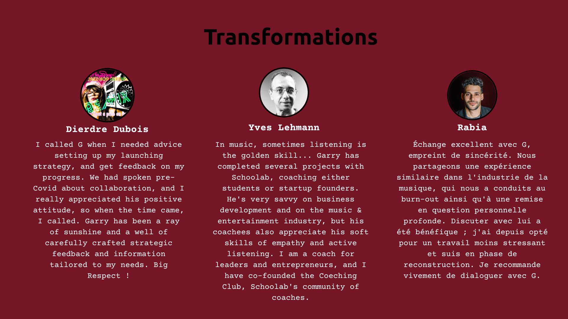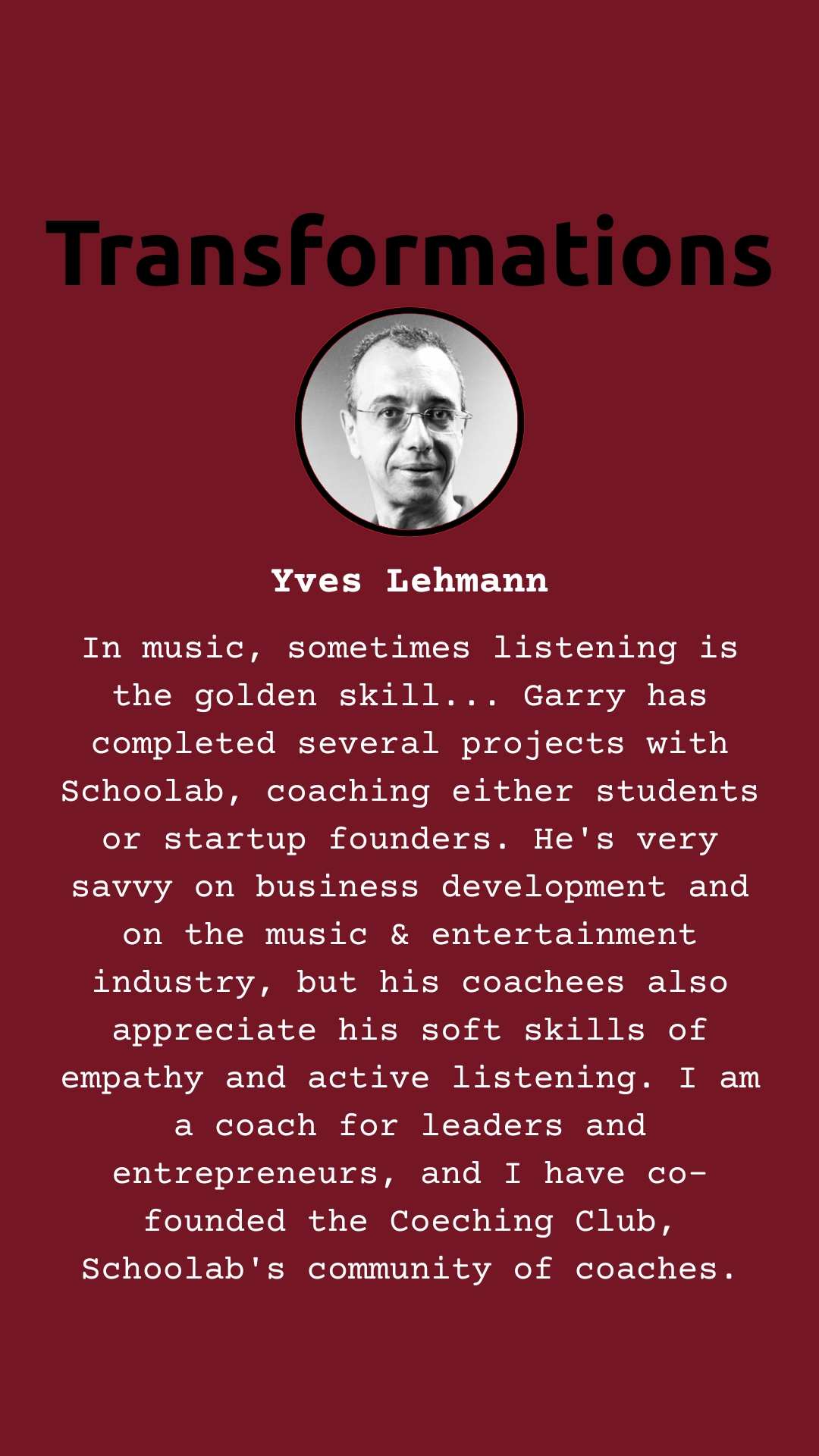 "He's very savvy on business development and on the music & entertainment industry, but his coachees also appreciate his soft skills of empathy and active listening."